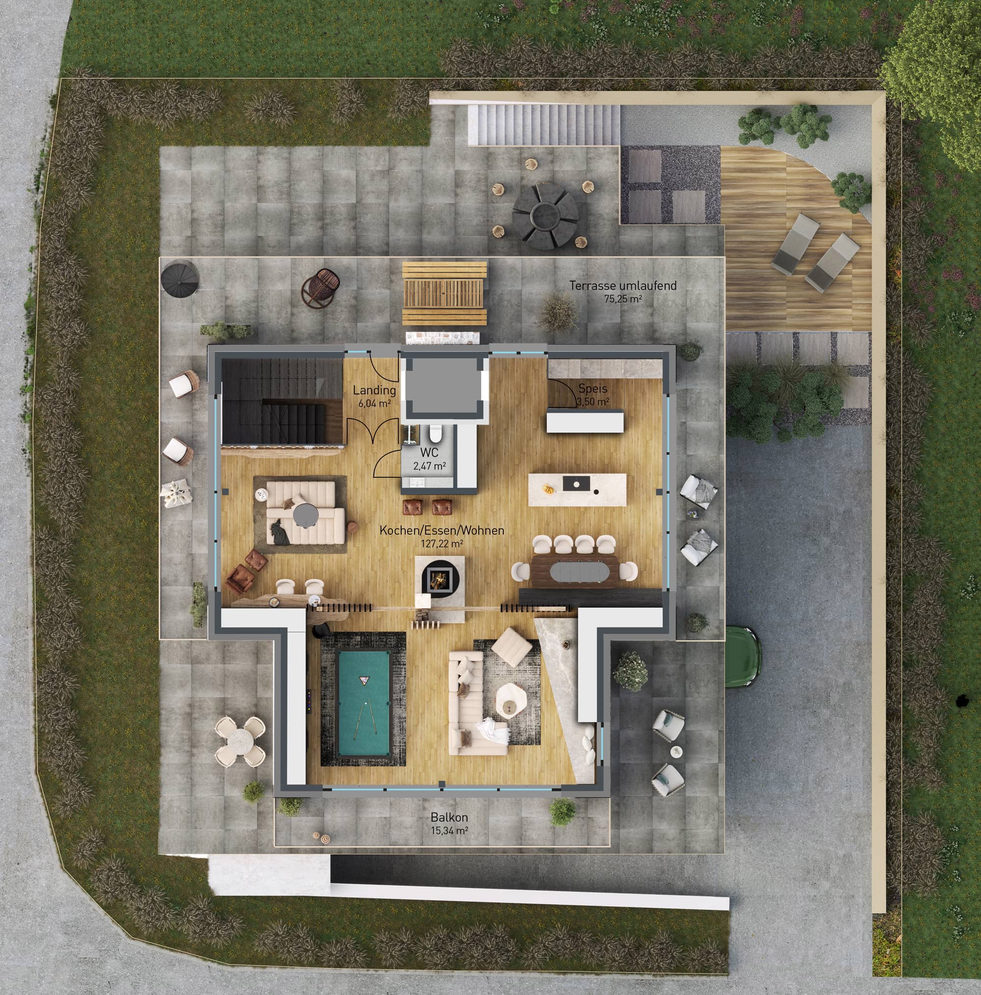 Feuer und Architektur treten in Dialog – Wärme, Licht und Struktur im Gleichgewicht. Offene Kamine im Wohn- und Wellnessbereich verleihen jedem Raum Geborgenheit und Charakter. Energieeffiziente Haustechnik, nachhaltige Materialien und zeitlose Architektur sichern dauerhafte Wertbeständigkeit.