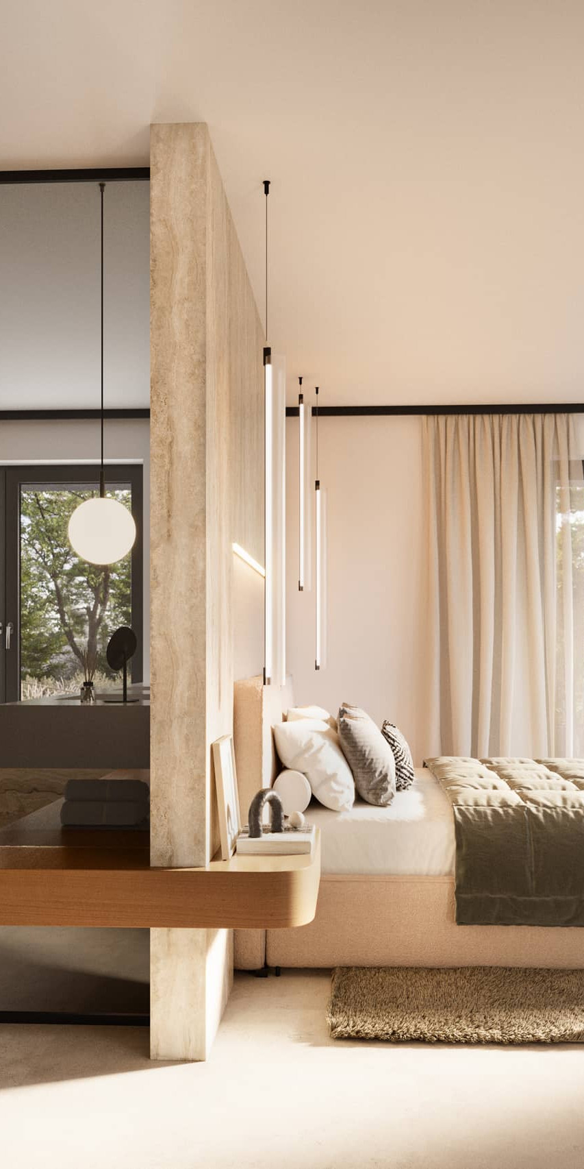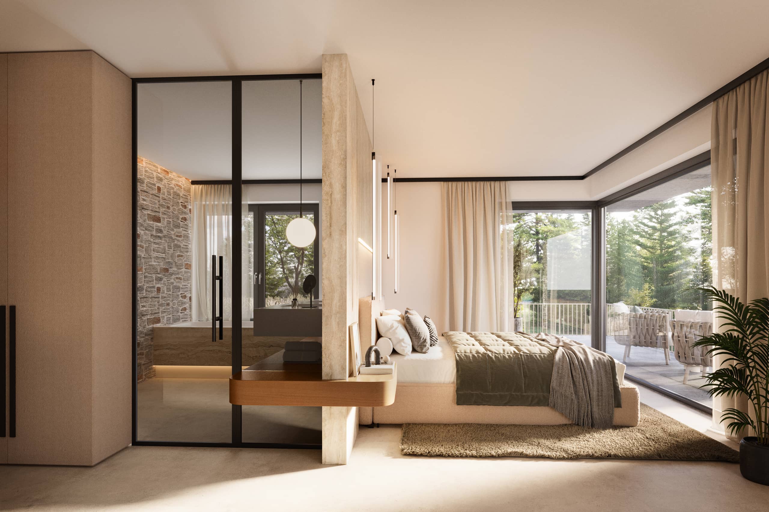 Die Schlafebene der Residenz ist dem Rückzug gewidmet. Vier Schlafzimmer – darunter eine Master Suite mit Ankleide und Bad en suite – schaffen Orte der Ruhe, Intimität und Geborgenheit.